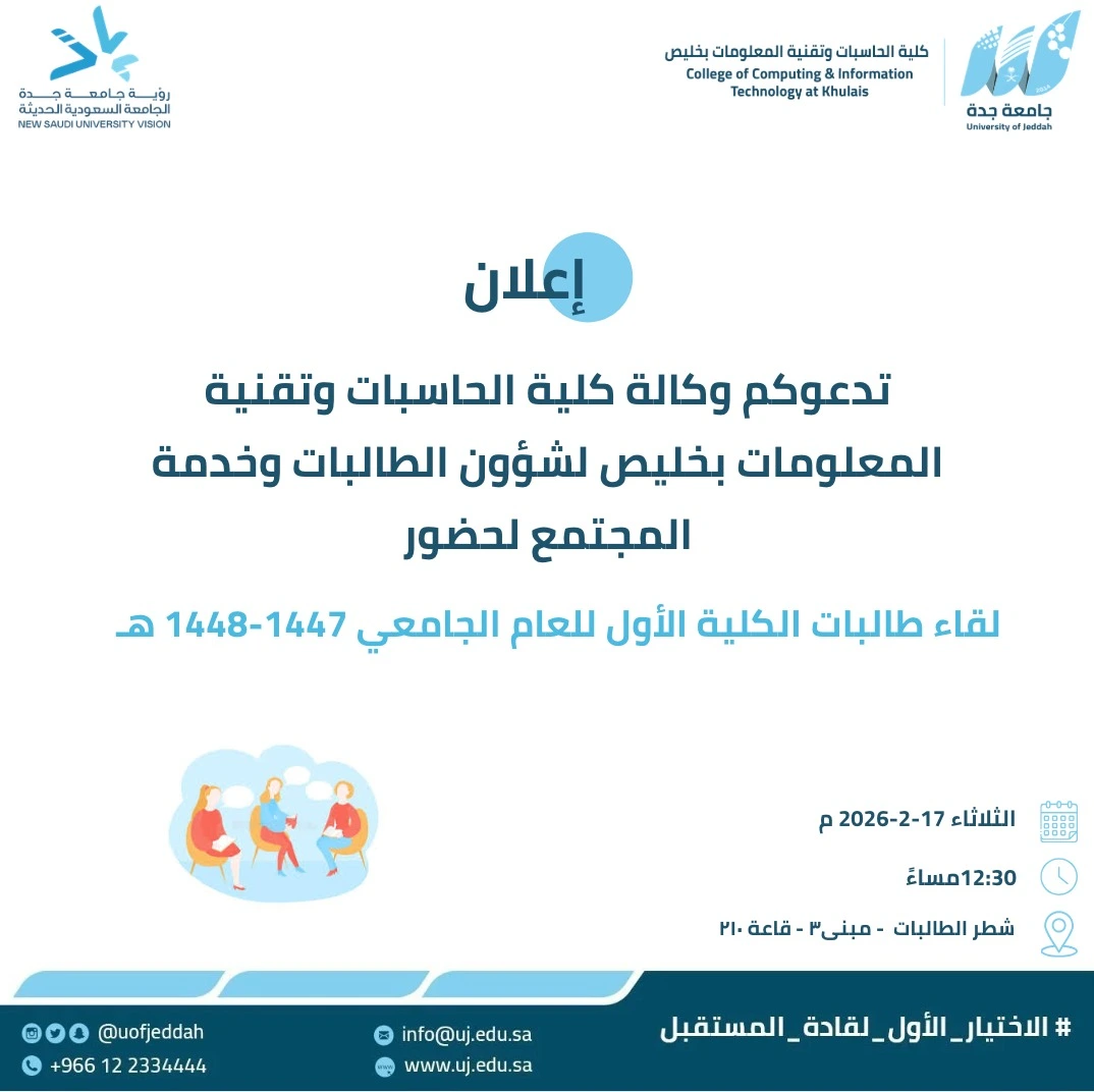 تأسست كلية الحاسبات وتقنية المعلومات بخليص بتاريخ ١٤٣٢/١١/٢٨هــ لتصبح ضمن الكليات المتميزة بجامعة جدة. وبجهود مباركة من إدارة الجامعة تم تجهيز معامل الكلية بأحدث أجهزة الحاسب الآلي وتسعى الكلية في تحقيق رؤية جامعة جدة، الجامعة السعودية الحديثة. تهدف الكلية إلى تأهيل كوادر وطنية متخصصة في المجال التقني من خلال تزويد الخريجين بالمهارات والمعارف الرقمية في بيئة علمية حيوية ومحفزة للمنافسة في سوق العمل واستخدام المعرفة في خدمة وتنمية المجتمع.